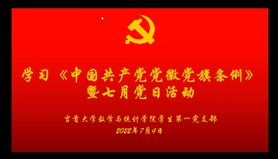 为深入学习贯彻《中国共产党党徽党旗条例》,进一步规范党徽党旗使用,充分发挥党徽党旗的政治功能,提高党组织的凝聚力和战斗力。2022年7月4日13:00,太阳成集团tyc151cc学生第一党支部组织全体党员通过腾讯会议开展了学习《中国共产党党徽党旗条例》暨七月份党日活动,活动由满超林同志主持。