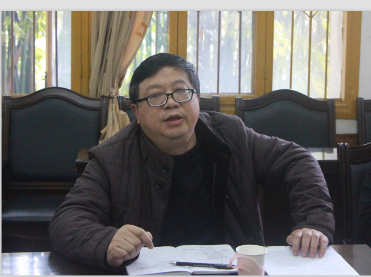 图为人事处吴志祥处长就我校及人社厅人才引进相关文件精神作重要讲话