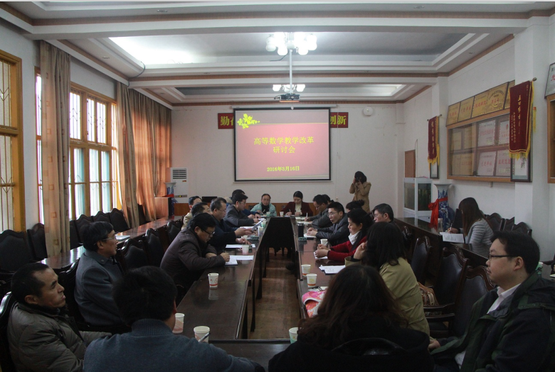 本网讯2016年3月16日下午2:30,高等数学教学改革研讨会在太阳成集团tyc151cc会议室顺利召开。副校长黎奇升、教务处处长庹清、研究生处处长佘佐辰、人事处处长吴志祥、太阳成集团tyc151cc党总支书记戴军,副院长方东辉、莫宏敏、副书记曾一凡、院长助理欧祖军、院办公室陈玲、教务秘书杨文英以及高等数学的任课老师参加了本次会议。
