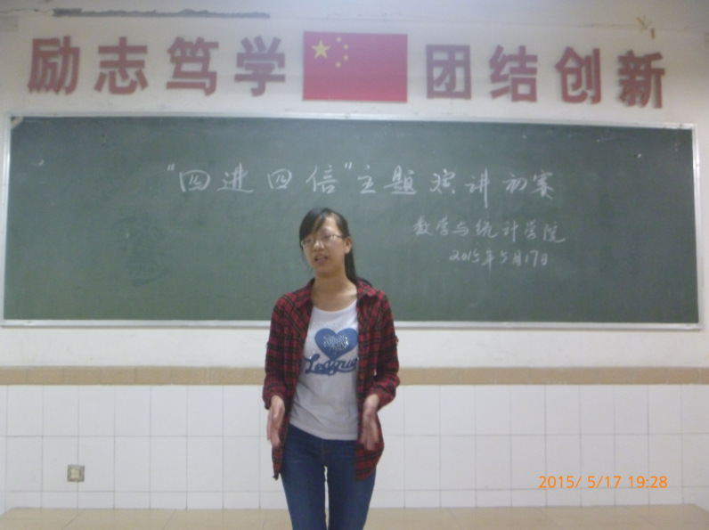 5月17日,由我院主办、团总支学生会承办的“我为四进四信代言,我为公益活动添彩”的主题演讲比赛在大田湾校区多媒体教室拉开序幕。