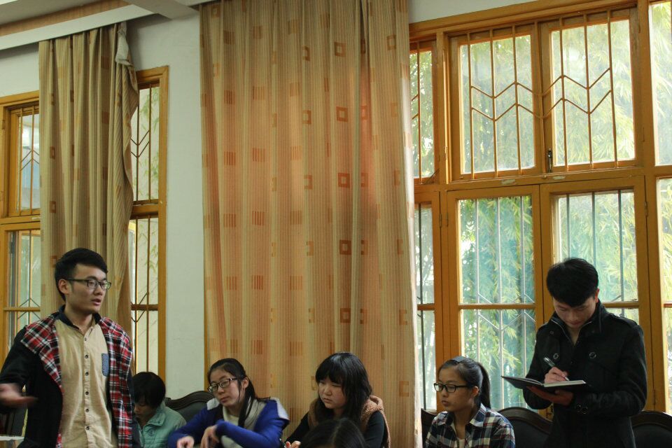 交流会伊始,嘉宾们先做了自我介绍,他们幽默风趣的语言让交流会中的尴尬气氛一扫而空。接着,文学院的前辈们结合了实际生活向大家分享了他们做学生记者的经验。他们分别从新闻稿的写作,摄影的技巧,培养新闻敏感度和作为记者的心态与思想来阐明怎样成为一名合格的记者。最后,进入自由问答环节,我院在场的同学积极提问,文学院的前辈们耐心解答。孙立青与同学们分享了他的一些摄影经验和技巧,并分享了自己的大学感悟,以自身经历来指导大家如何更好规划大学生活,他建议同学们在大学期间合理利用时间,坚持做自己喜欢的事。