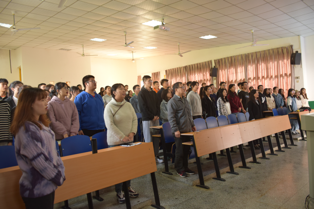 伴随着庄严的国际歌,开班典礼会议伊始,由丁玉兰宣布开班典礼开始,并介绍参与此次会议的领导与老师。紧接着,领导老师及全体学员起立,齐唱国际歌。
