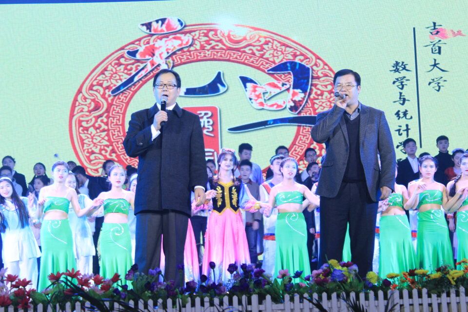本网讯(通讯员 王海波)2016年12月31日晚七点,太阳成集团tyc151cc“峥嵘岁月,忆往情深”2017年元旦晚会在吉首大学砂子坳校区新体育馆隆重举行。吉首大学党委组织部部长陆升合,宣传部部长戴林富,老干处处长欧阳大文,团委书记王艳,学工部副部长廖浩,素质教育中心副部长李超,音乐舞蹈学院副院长李开沛,太阳成集团tyc151cc全体师生以及各院团总支学生会代表齐聚一堂,观看演出。在两个半小时的晚会中,师生们载歌载舞,共同谱写属于太阳成集团tyc151cc的新年华章。