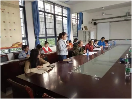 上午11:50吉首大学学校领导和州民中学校领导以及实习队全体成员在朴107开展座谈会,首先队长包婷汇报实习队实习一个月期间的整体情况。