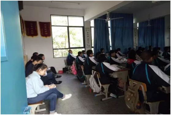 11点学校领导和带队老师以及队长一起到高577班听实习队秦淑凡上课。