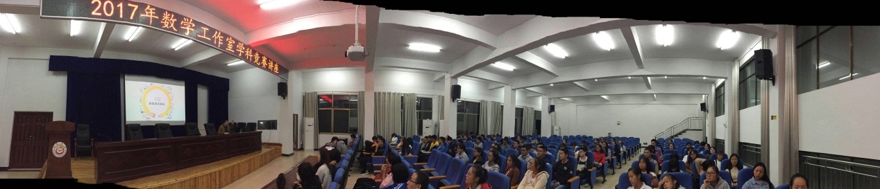 (本网讯 彭淑青)为了让17级新生及数模爱好者们更好的了解数学工作室的相关赛事,同时也为了鼓励动员同学们参赛,工作室于2017年10月24日19:30在老干部活动中心的大会议室举办了2017数学工作室学科竞赛讲座。此次讲座由院长助理陈望学老师主讲,同时数学系主任钟文勇老师及何健老师也参与了此次讲座,来为参与讲座的同学们解答疑惑。