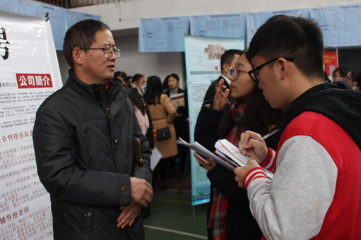 招聘会现场,同学们热情高涨,积极递交个人简历,了解用人单位的招聘信息,与用人单位进行面对面交流。一位毕业生激动的说“我很感谢学校的这次招聘会给了我机会,让我学习到许多经验;我希望能找份中学老师的岗位,这与我专业对口,也希望未来能有个好的工作环境,当个好老师。”