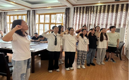 接着优秀党员教师刘如艳同志引领11名2024年春季接收的学生党员在党旗前进行了庄严的宣誓,同学们热情而激动,誓言声久久在现场回荡。
