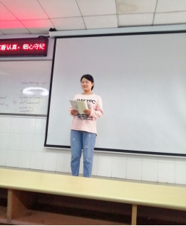 随后是班级学优学先活动。首先是专业成绩班级第一的李赛凤同学分享她的学习经验,主要总结为以下三点:第一,做好时间规划,了解自己所要做的各种事情的重要性,采取先后顺序完成任务,确保都是有效时间第二,制定目标,可以分别制定长远目标和短期目标,有了目标就有了动力,坚持就是胜利第三学习就是一起分享一起进步的过程,不用羞于提问,一个问题两个人交换思想就有两种方案。